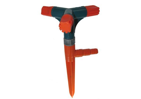 Вращающийся дождеватель с тремя регулируемыми "лопастями". Устанавливается на пластиковой основе типа "колышек".
