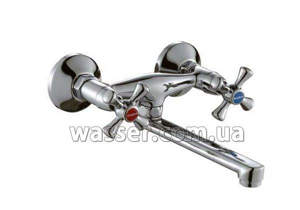 Смеситель на кухню/умывальник настенный с плоским гусаком.