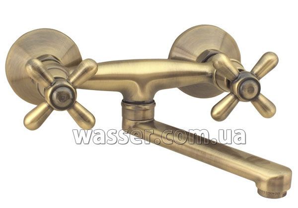 Смеситель на кухню/умывальник настенный с плоским гусаком.