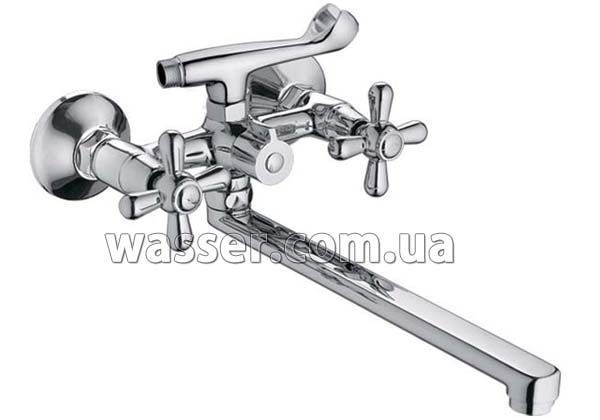 Смеситель для ванны с длинным поворотным гусаком и euro переключателем на душ.