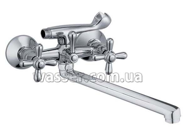 Дополнительные характеристики: комплектуется растяжным шлангом для душа 1,5 м., душевой лейкой, держателем для душевой лейки, декоративными чашечками и эксцентриками для установки в стену.