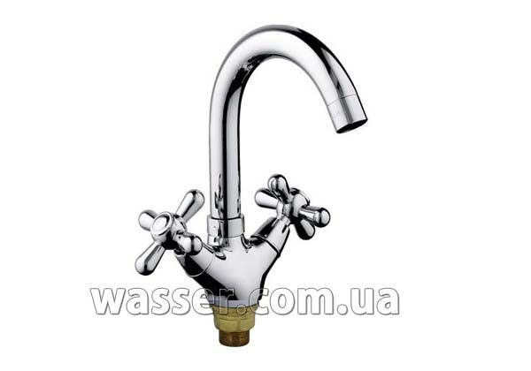 Смеситель на умывальник с полукруглым поворотным гусаком.
