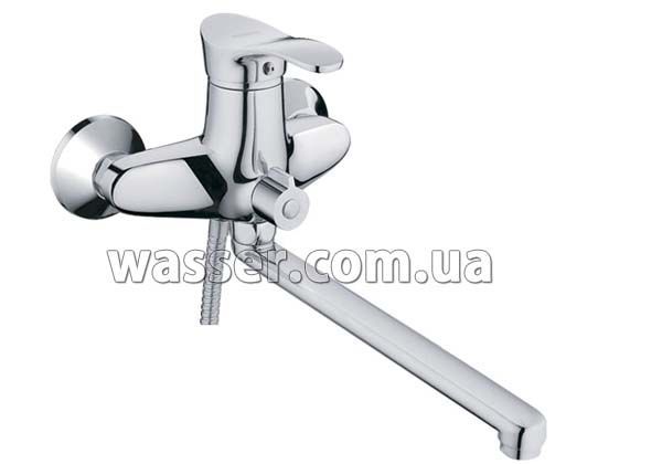Смеситель для ванны с длинным поворотным гусаком и euro переключателем на душ.