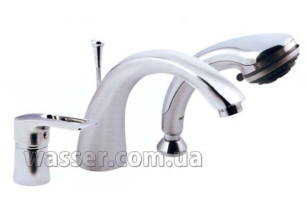 Дополнительные характеристики: комплектуется растяжным шлангом для душа 1,5 м., душевой лейкой, встраиваемым держателем для душевой лейки, подводкой для смесителя 45 см., крепление - шпилька.