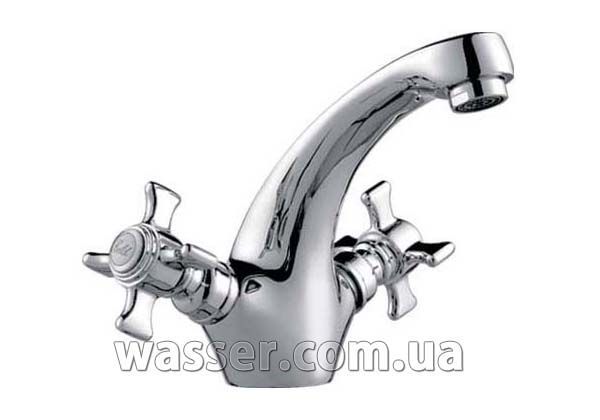 Смеситель на умывальник с длинным литым гусаком.