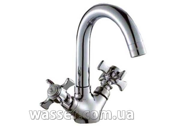 Смеситель на умывальник с полукруглым поворотным гусаком.