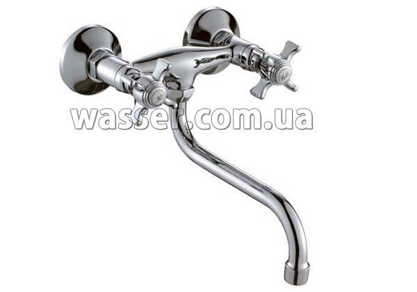 Смеситель на кухню/умывальник настенный с плоским гусаком.